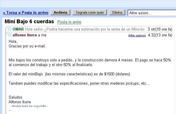 gli ho appena inviato una mela chiedendogli il prezzo del modello SC-scroll 5 strings e notizie su una eventuale spedizione.